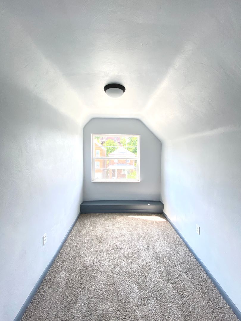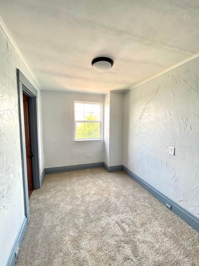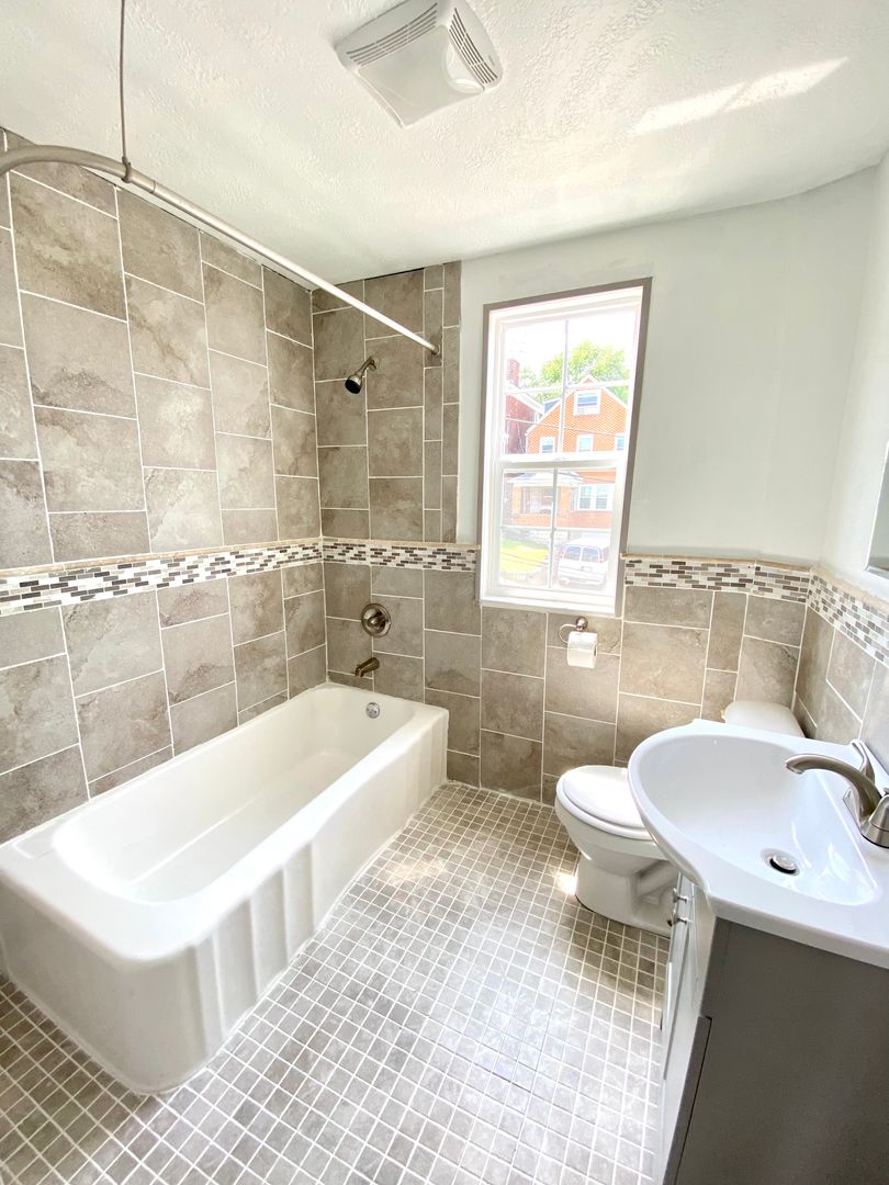 Spacious and newly renovated 4 bed/2 bath home available now! On the first floor is a spacious living room, dining room, newly updated kitchen and the first full bath. Stainless steel appliances being installed in the kitchen. Off of the first floor living space you will find a private deck that overlooks the back yard and the off-street parking area. Upstairs you will find 3 bedrooms and the second full bath. On the 3rd floor you will find another bedroom with a bonus walk in closet space. Central AC and heating, off-street parking in the rear. Washer and Dryer included in basement!