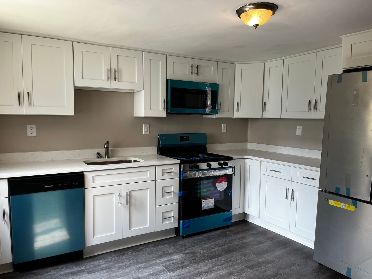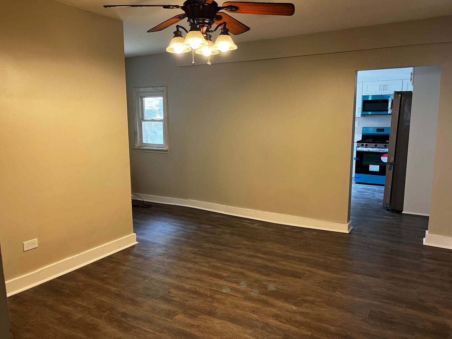 Hard flooring throughout the entire home. Updated kitchen - Modern countertops, Stainless steel double-door refrigerator, dishwasher, range, and microwave. Two large bedrooms on the second floor could easily fit a king-sized bed with in-wall AC units in each bedroom.