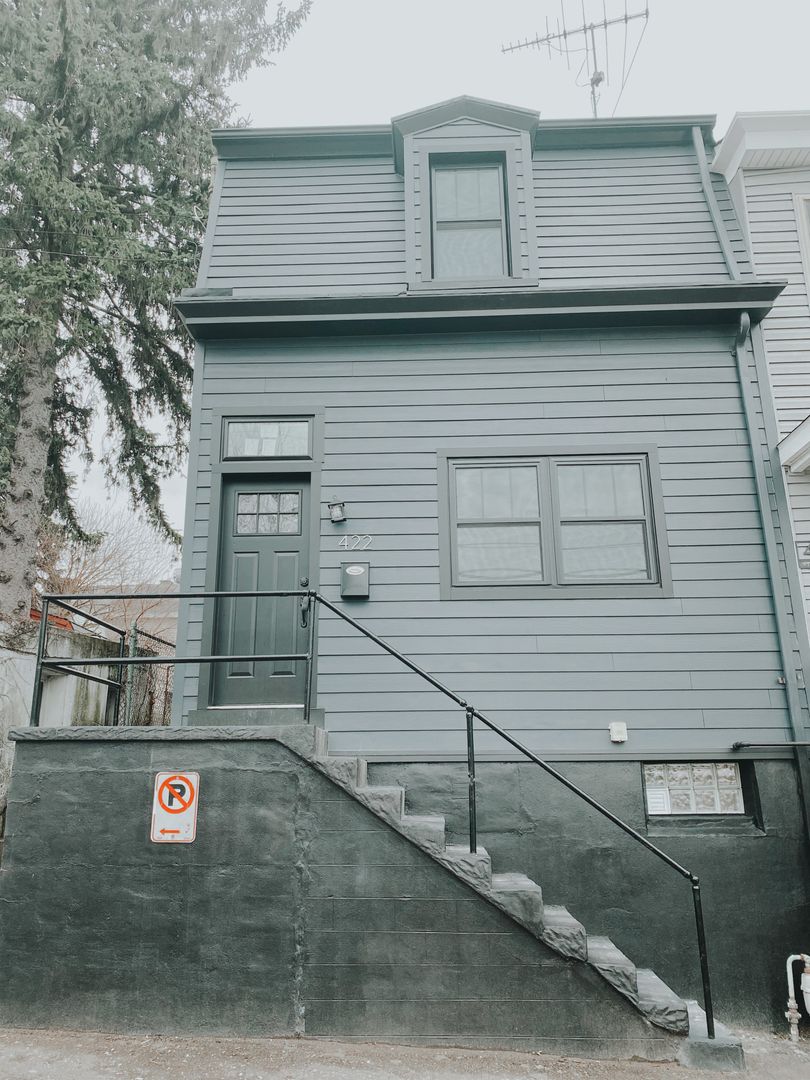 This modern 2 bedroom home is located in the heart of Bloomfield with convenient access to all Downtown Bloomfield, Lawrenceville, and East Liberty has to offer. With walkability to local attractions such as restaurants, retail, night life and public transportation, this location is ideal! The home comes fully equipped with an open-concept floorplan featuring a living room with an exposed brick fireplace as well as a kitchen with a large island, a stainless steel range, dishwasher, microwave and refrigerator on the mail level. Downstairs, you will find a stunning bathroom with modern finishes. The bathroom has two vanities and a walk-in rain shower. The lower level also includes a washer and dryer. Upstairs there are 2 large bedrooms with multiple closets for storage. Additionally, the home offers a large fenced-in backyard perfect for entertaining. Tenant responsible for all utilities.