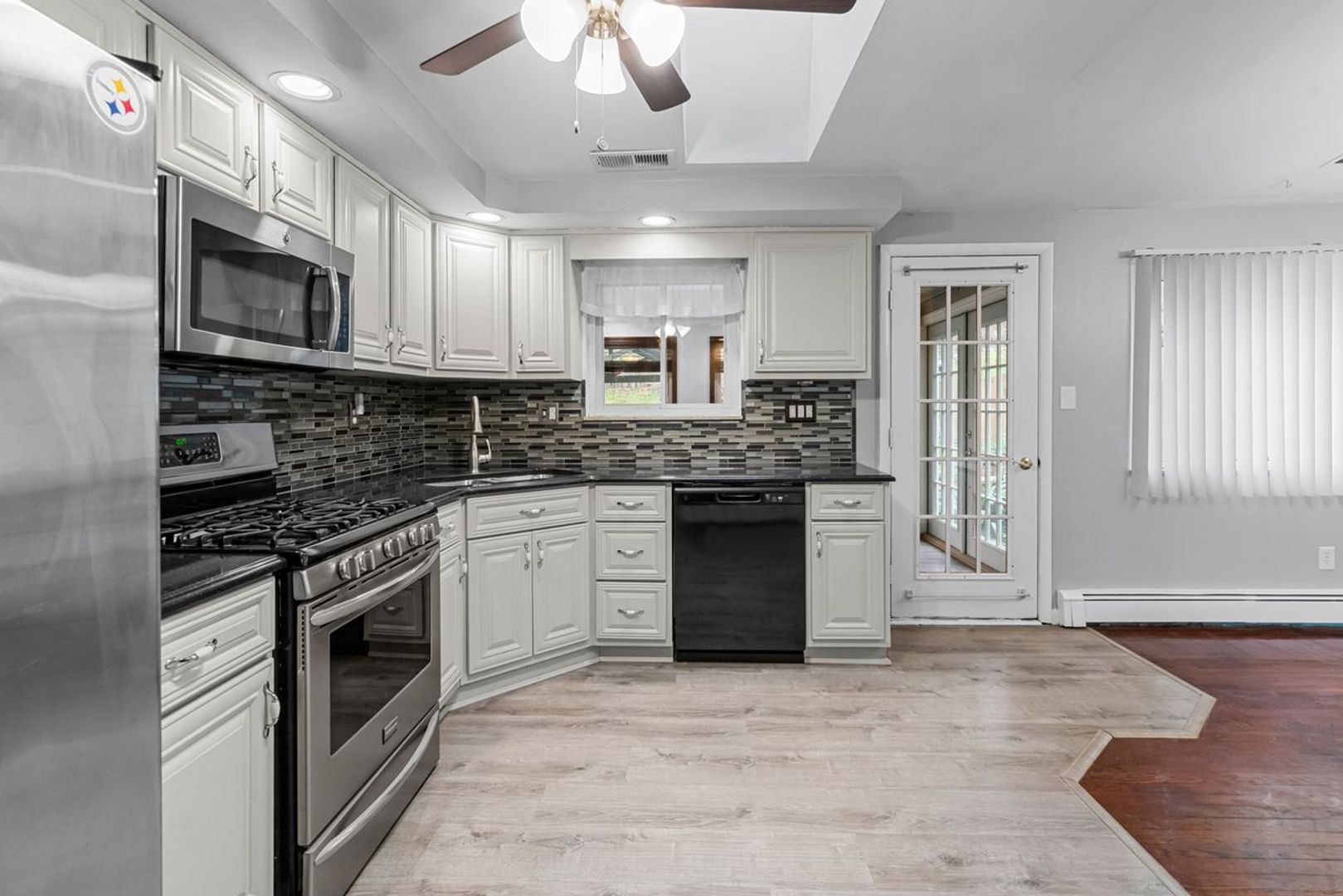 Newly renovated 3 bedroom/2 bathroom ranch style home in a beautiful neighborhood. The living room features stunning hardwood floors. Updated kitchen with stainless steel appliances. The family room has an entire wall of windows looking out to the large, beautiful, fenced in yard, patio. The home has been freshly painted along with new carpet in the bedrooms. Finished basement would make a great game room or additional space for an office. 2 car garage along with a washer in the dryer in the basement. Large backyard with a patio and storage sheds. This home also has central air.