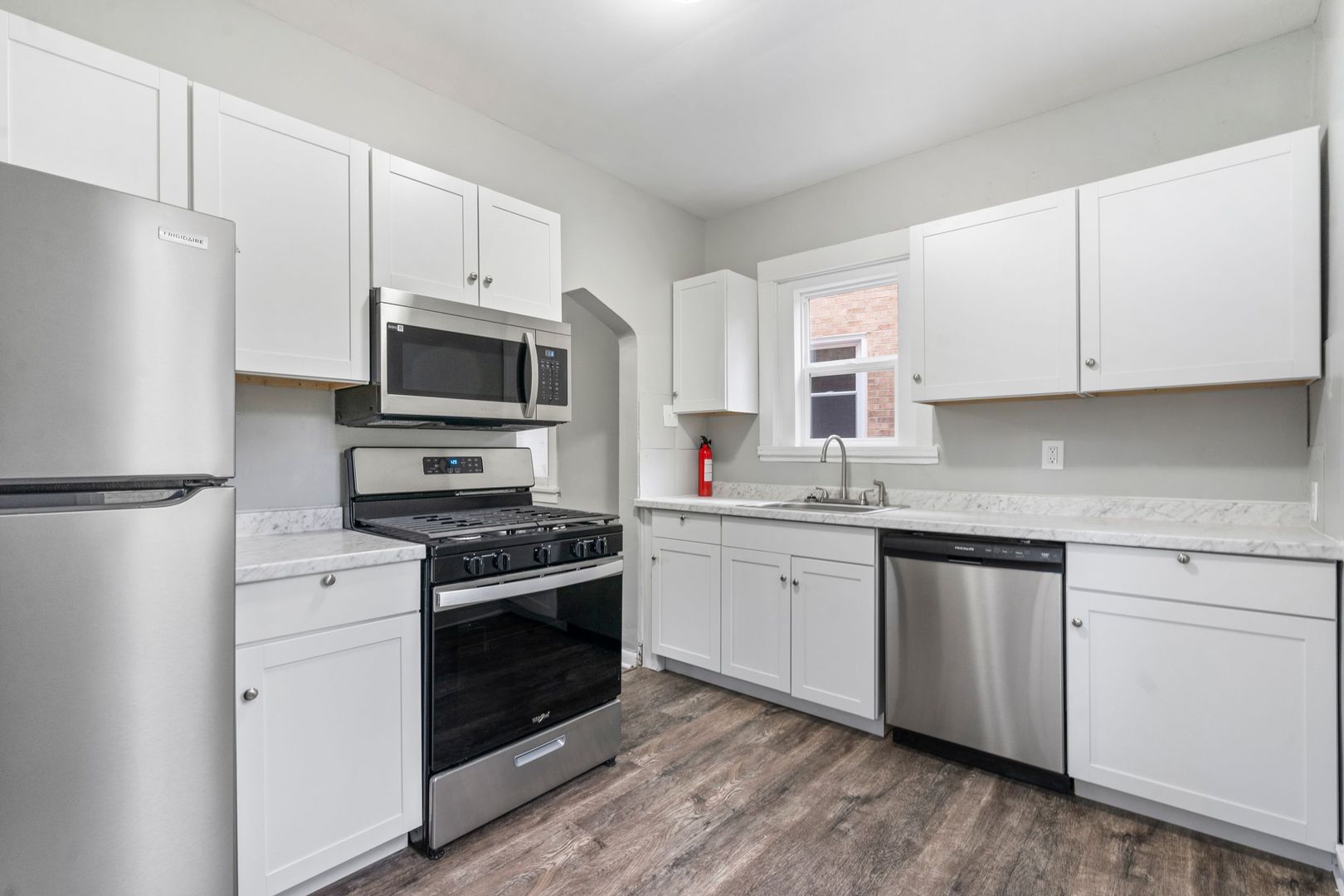 Stunning recently renovated 3 bedroom/1 bathroom home in Carrick. Walk into the expansive living room with newer hard flooring and a decorative fireplace. The kitchen features newer countertops, cabinets, and appliances including a dishwasher! The entire home has been recently painted. All 3 bedrooms have newer carpet and ample storage space. Bathroom has been renovated as well and has beautiful tile in the shower. This home also has central air! Large front porch along with some outdoor space in the back and a nice yard.