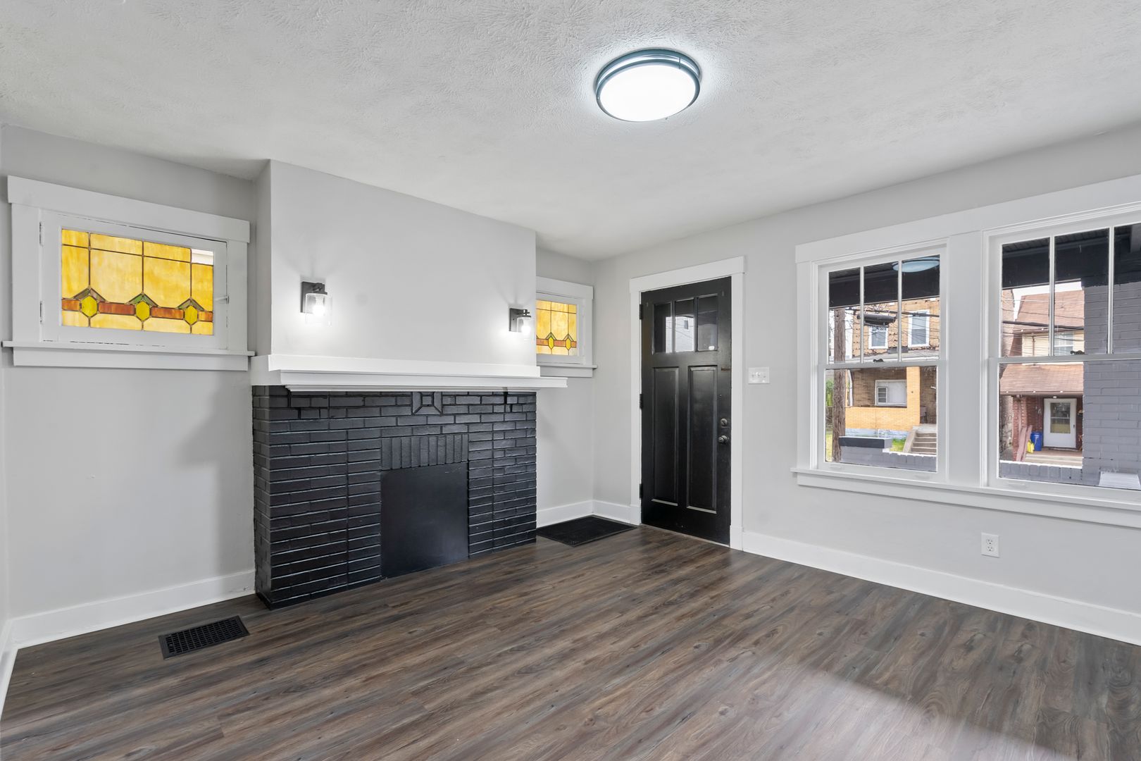 2 bed 1 bath with complete fresh updates throughout. Enter into this unit via covered front porch into spacious living room with new floors/paint/fixtures. Unit has separate dining room. Nice layout featuring large open living/dining areas. Kitchen was refreshed with new counters. Bathroom total update with new vanity/mirrors fixtures etc. Two bedrooms round out the space - master is very large. New carpets in bedrooms. Shared laundry in basement. Nice rear yard. Lots of windows for great light. Must see.